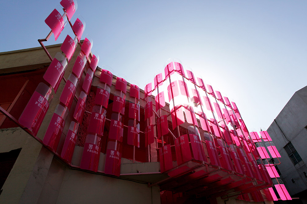 이 프로젝트의 목적은 국군 기무사령부로 사용되던 건물을 경찰관 방패에서 아이디어를 차용하여 새롭게 변형하는 것이다. 건물의 벽과 가구들, 조명, 화장실등은 제거되고 모두 핑크색으로 칠해졌다. 방패들은 기존의 파랑색에서 핑크색으로 바뀌고 쓰여진 글씨도 ‘경찰’ 에서 ‘뽕짝’으로 ‘police’에서 행복이란 뜻의 ‘felice’로 변하였다. 마침내 112개의 핑크색 방패들이 건물의 정면 파사드에 적용되면서 음울해 보이는 기무사령부 건물을 행복한 퍼포먼스 공연장으로 변화 시키는데 성공하였다.
